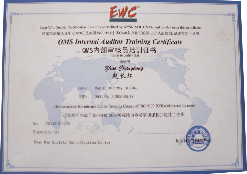 QMS內(nèi)部審核員培訓(xùn)證書