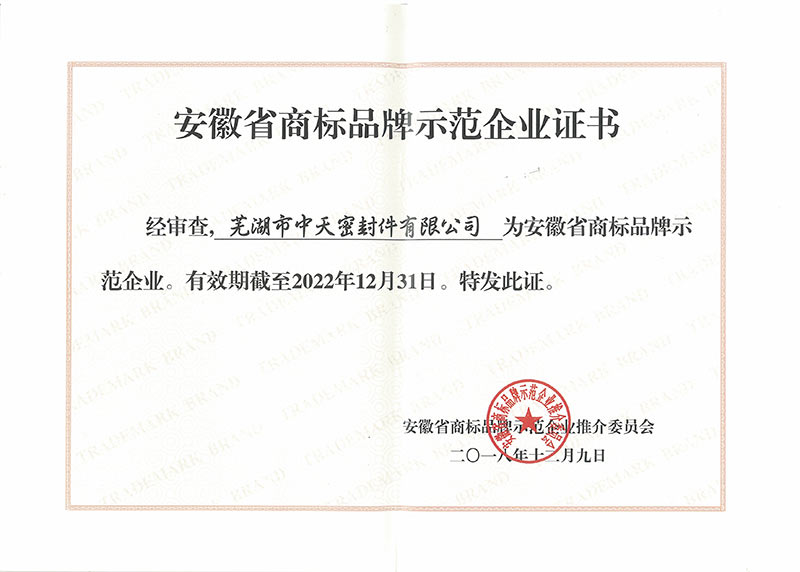 安徽省商標(biāo)品牌示范企業(yè)證書